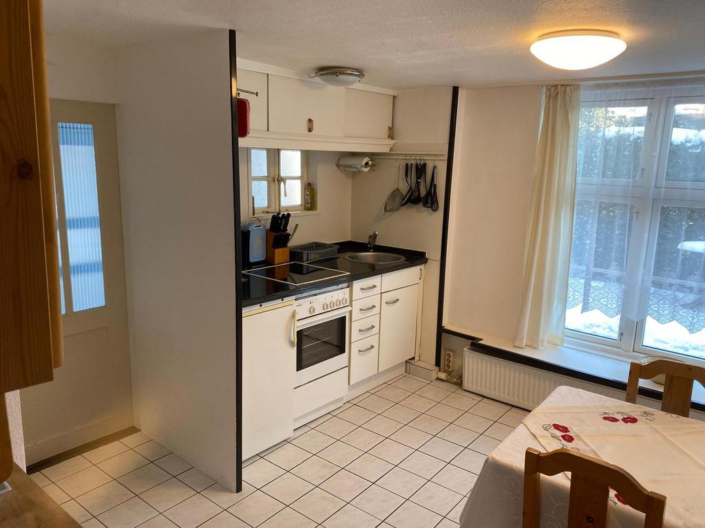 Ein Esstisch und 4 Stühle laden zum Essen ein. Die Küche ist mit einem Cerankochfeld Herd mit Backofen ausgestattet. Ferner finden Sie eine Kaffeemaschine, Eierkocher, Wasserkocher und noch einige